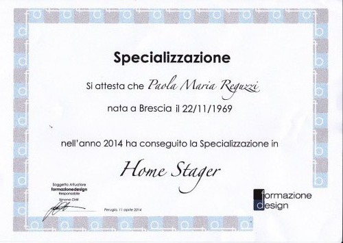 ”Appassionata da sempre di arredamento e restauro, dopo un’esperienza ventennale nel campo della creazione e del rinnovo degli impianti e complementi di riscaldamento e sanitario, ho deciso di dedicarmi completamente alla home staging. Questa nuova professione in Italia, ma più che ventennale negli Stati Uniti ed in Inghilterra, è l’arte di preparare le case in modo adeguato per una vendita e/o affitto, con un servizio personalizzato, semplice ed efficace con interventi poco costosi, non invasivi e non strutturali. Ecco come ho potuto sfruttare la mia passione e conoscenza nel rinnovo e recupero di mobili di qualsiasi epoca per far spiccare il volo a qualsiasi immobile.”